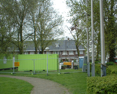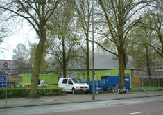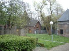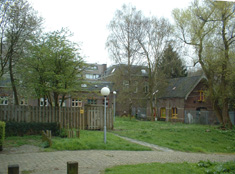| De illegaal gebouwde schutitng tussen de achterpercelen van de Vliertstraat en het terrein rondom het Kruithuis. | foto's © paul kriele, 13 april 2005. |
