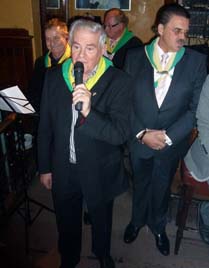 De vier sprekers op deze feestelijke afsluiting van carnaval 2011, vlnr. Kikvorschvoorzitter Bertie van den Heuvel, Bèr Verdonk [voorzitter van de Dassendragers], Peter van den Groendaal met diens zoon Otto uitbater van 't Pumpke en Hans Bosmans. foto © paul kriele, 9 maart 2011. |