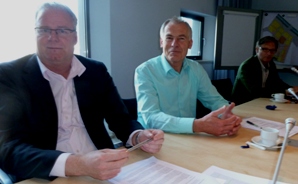 | Wethouder Ton van Bussel met hoofd stadsontwikkeling Willem van de Made en de projectleider Willen van de Velden in een toelichting voor de pers. foto © paul kriele, april 2011. |