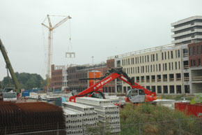 ![]() | Hierboven: oud en nieuw naast elkaar. Het Alexander gaat dienst doen voor personeel en facilitaire diensten. Links: twee imposante nieuwbouwvleugels. foto's © paul kriele, 27 augustus 2008. |