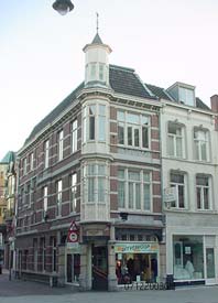 | Het hoekpand Vughterstraat 2/ Achter 't Verguld Harnas. Eerst zat er ART MEN in en toen Rituals dat naar de overkant verhuist. foto © gerard monté, 7 december 2003. |