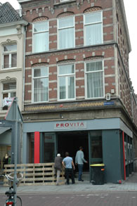 | Vughterstraat 5 waar Runnersworld zat, komt de dependance van een Bredase zaak die gespecialiseerd is in overhemden. foto © paul kriele, 28 augustus 2008. |