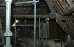 De restaurateurs en bouwvakkers hebben nog veel werk te verrichten. Na het bouwkundige traject volgt pas in het najaar de nog interessantere restauratie en het terugbrengen van de muurschilderingen, waarover eerder is bericht.*