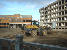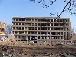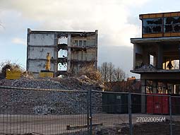 | De sloop van de voormalige schoolgebouwen van de HAS op de Vliert vordert. | foto's © gerard monté, 8 februari 2005. |