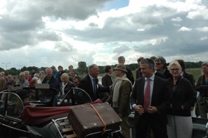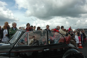 Vandaar uit werden zij om 12.15 uur [..] met oldtimers naar de tent op het viaduct gereden waar de ceremonie zich zou voltrekken.
