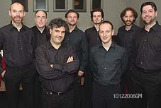 | -Hierboven de leden van 'Capilla Flamenca'. -Rechts: Het rmuziekgezelschap tijdens de repetitie met doedelzak en draailier. -Rechts: Secretaris van de Stadspijpers Marcel Ploegmakers, die na afloop afscheid zou nemen, leidt het publiek in goede banen. foto's © gerard monté, 10 december 2006. |