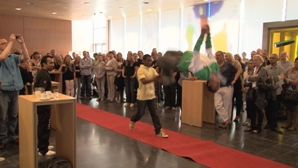 | -Links: Het bestuurscentrum waar door twee City Trainers een staaltje acrobatiek werd gegeven. -Boven: De uitreiking van de certificaten. foto's © roland brouwer, 24 mei 2011. |