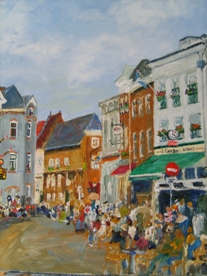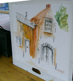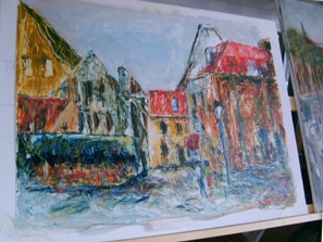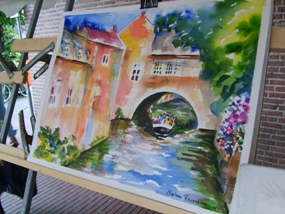 | -Boven: Deel van de expo onder de ABN/AMRObank. -Rechts boven: Een van de meeste geschilderde em gefotograffeerde pandjes in de Molenstraat. [toegang tot een voormalige schuilkerk].Dat maakster van dit schilderij A Amesz -kreeg de aanmoedigingsrijs. -Rechts: Schilderij van Marleen Reverboel, wederom de Uilenburg. foto's © roland brouwer, 5 juni 2011. |