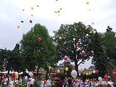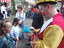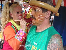 Links boven: ouderwets kleuren. Boven: Schmincken blijft populair, evenals tatoeages.. Links: De ballonnenman had gretig aftrek foto's © gerard monté, 25 juni 2006. |