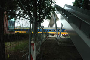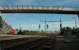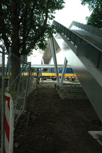 Vannacht van 19 op 20 juni 2011 zijn de laatste delen, de trap aan de zijde Gement en het platte wegdeel van de brug over het spoor en over de Randweg gelegd. De brug van constructiebedrijf van den Bersselaar is nog niet klaar. Hekken belemmeren nog het gebruik. De verwachting is dat rond 25 juni 2011 de brug in gebruik kan worden genomen.