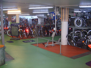 | Uitbreiding van de stalling in de parkeergarage onder het station met voorlopig 2.000 plaatsen. | foto's © roland brouwer, 7 juli 2011. |