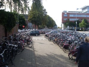 | Onder het station krijgen fietsen meer ruimte. | De overvolle stalling bij het busstation die wordt verplaatst. foto's © paukl kriele, 26 februari 2009 en 10 september 2009. |