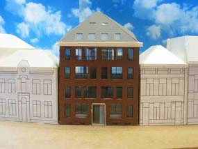 | Plan voor Gereformeerde Kerk en aanpalende panden waarin appartementen zijn voorzien. | De Kerk in de Jan Heinsstraat, die al jaren leeg staat en waarvoor al jaren een bouwplan loopt. foto © gerard monté,16 december 2007. |