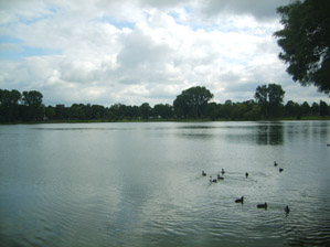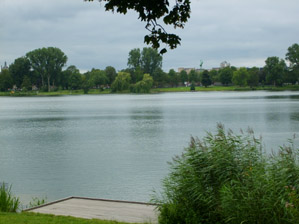 | IJzeren Vrouw Blauwwieralg is schadelijk voor mens en dier. De IJzeren Vrouw gezien vanaf de Grobbendoncklaan en vanaf de Ophoviuslaan [r.] foto's © roland brouwer, 30 juli 2011. |