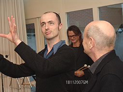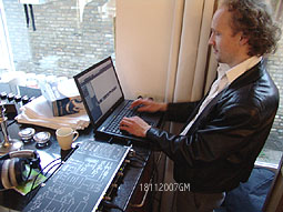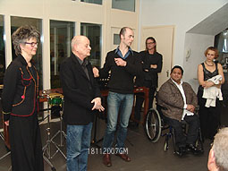| -Links boven: Opnames voor Concertzender door componist Fred Momotenko. -Rechts: Presentator en componist Roderik de Man [rechts] interviewt componist Thomas Smetryns uit Gent. -Boven: Gezamenlijk gesprek met componisten en uitvoerenden. foto's © gerard monté, 18 november 2007. |