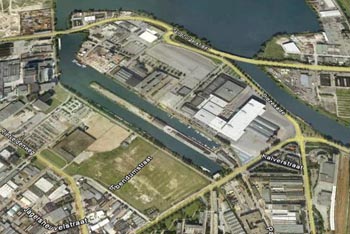 Middenin kaart: De Industriehaven bij de Brabanthallen, waar Watersportvereniging Neptunus nu een haven heeft. Maar die haven staat een herontwikkeling te wachten. |