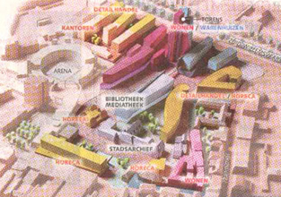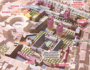 Het ontwerp van de Vlaamse architect Bob van Reeth. Bij Van Reeth zijn de kenmerken: Kantoren en woningen op niveau [verhoogd perron] en een diagonaal van Arena naar Kardinaal van Rossumplein.