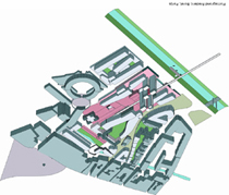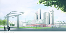 -bOb Reeth probeert bij de ruimtelijke typologie van de stad aan te sluiten. Het Antwerpse bureau kiest voor straatjes en pleinen aansluitend op een bestaande architectonische structuur. Wezenlijk in zijn pan is de diagonaal door het gebied. Ook hier laat de architect de drie oude eenheden van het ziekenhuis integreren.