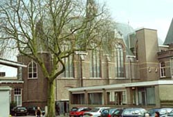 | Het zusterklooster [*1911] tegenover de parkeergarage dat stand houdt | Het mortuarium op het binnenterrein, dat gespaard blijft. Het was eerder [1914] de polikliniek. Mogelik krijgt het de functie van kinderopvang/speellokaal foto © paul kriele, 7 augustus 2008. |