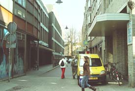 | De straat achter Hotel Central, naar de Parkeergarage, heette in de tijd van De Pijp [voor 1960] Raamstraat. foto's © paul kriele, 28 maart 2006. |