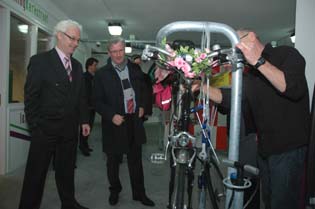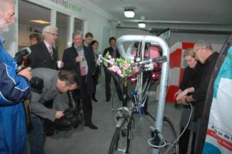 'Het is de bedoeling dat de gebruiker zelf de reparatie verricht, maar de bezetting van de fietsenstallingen zullen niet ongenegen zijn om een handje te helpen. Maar ze mogen geen concurrent worden van de plaatselijke fietsenhandelaren,' aldus Meriënboer in zijn toespraak.