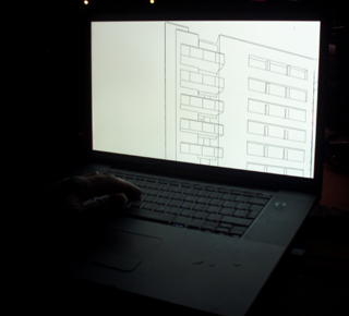 | Indruk van de unieke projectie. | Vanuit 15 beamers, die zowel binnen als buiten staan opgesteld, wordt de projectie vertoond. |