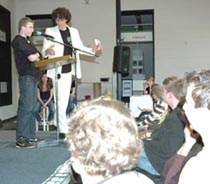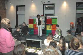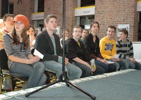 Op het podium van het biebplein traden tien leerlingen op wier voordrachten afgewisseld werden met optredens van Marlies Somers [piano en cabaret] en voordrachten van Hagar Peeters [tevens jurylid] en Erik Jan Harmens [ook jurylid].