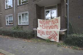 Het protetst in de vorm van spandoeken was in het begin van de middag van 21 september 2008 weer weggehaald.