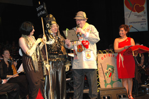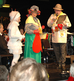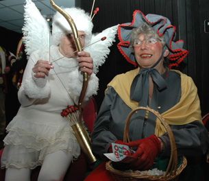 En het duo Wilma Janssen als Cupido en begeleidster Willeke Hurkens, die de prijs ontvingen voor het meest carnavaleske kostuum. foto's © paul kriele, 14 februari 2012. |
