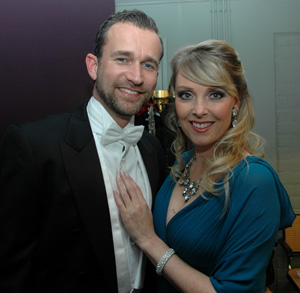 | Topartiesten met prachtige stemmen Joke de Kruijff en Rolf Koster, die even poseerden in de kleedkamer voorafgaand aan hun optreden. foto © paul kriele, 14 februari 2012. |