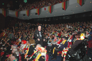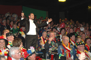 | De zaal alswel de toneelbak zat overvol. Maar de bak was wel het meest stemming makend en heet dan ook niet voor niets de smaakmakers.. | Zo maar enkele uitgelaten bezoekers. foto's © paul kriele, 14 februari 2012. |