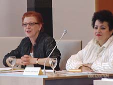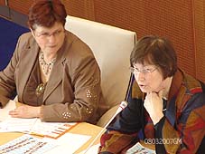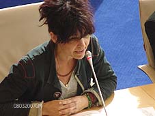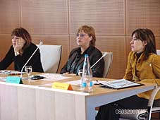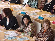 -Hierboven: Lotte Landsheer [Cor Unum], die met een voorstel over kunst indiende. -Rechts boven: De door voormalig gedeputeerde Joep Baartmans geleide 'Raad 8 maart'. Naast haar Nelleke van Wijk vanhet Vrouwennetwerk, die als griffier optrad. -Rechts: middenin wethouder Jetty Eugster met rechts van haar Maijke Hüsstege die door haar deskundigheid als eigenaresse van een galerie, deelnam in het debat over [vrouwen in de ] kunst en het asepct Keramisch Werkcentrum. Links op de rechter foto VVD gedeputeerde Mieke Geeraerdts. foto's © gerard monté, 8 maart 2007. |