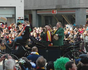 ![]() | Het Errumbestuur, de Ministerraad en den Peer en diens Assessor Kees Minkels gingen voorop. Daarvoor eevrigens enkele reclamewagens en het Rode Kruis. foto's © paul kriele, 20 februari 2012. |