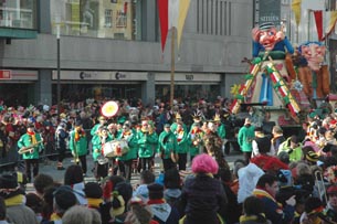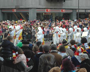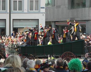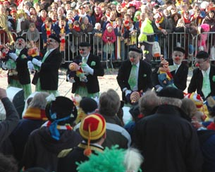 | De Hupmariannekes. Deze brassband beet het spits af, gevolgd door enkele STAPELgekke frauduleuze professoren in een koets... foto's © paul kriele, 20 februari 2012. | ![]() |