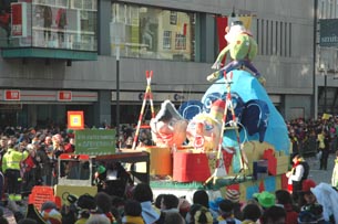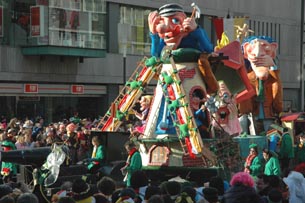 | -Boven: De Dikkupkes met 'Oeteldonk zoekt jong!' Ontwerp:Eric van Boxtel [8e plaats] -Rechts boven: 'De Krabkes' : Met het motto 'Veur eewig jong'. Kreten als; Ik eis minder vlieguren en: Eeuwig jong. En bij een bordje 'Begraafplaats Groenendaal staat: ' Magere Hein heeft hier niks te zoeken.' Ontwerp Benjamin van Hoek. [3e prijs] -Rechts : De loopgroep olv Theo de Koning met ook het thema Oeteldonk houdt oe jong' die het publiek met nepbabies aan het schrikken maakten. [1e plaats] foto's © paul kriele, 20 februari 2012. | ![]() |