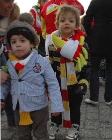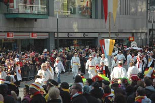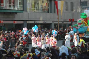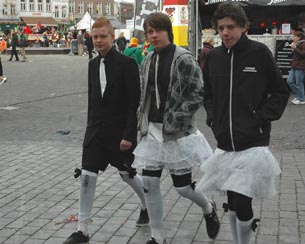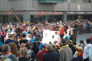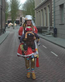 | Moeder met 'n Kniliske in de Lange Putstraat. | Zwart /wit én carnavalstransgender... foto's © paul kriele, 21 februari 2012. |