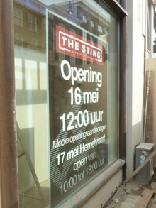 Een klassieke gevel die is geïnspireerd op de stijl van modehuis Vinke uit de jaren voor de vertbouwing van Vinke in de jaren eind 40 [van de vorige eeuw] een modern interieur met de kleurstellin zwart, donker/paarsblauw en grijs en een indrukwekkende oppervlakte als ware het een modewarenhuis ipv een kledingwinkeltje. De architect is VOCUS olv directeur Bob Custers. The Sting opent op 16 mei 2012.