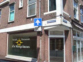 | Het hoekpand waar jaren de Mengelmeos was gevestigd. Doordat eigenaar Van Dartel de huur niet met de nieuwe exploitant King Coaching wil voortzetten is er een eind gekomen aan dit sociaal restaurant op deze locatie. | foto's © paul kriele, 13 juli 2008. |