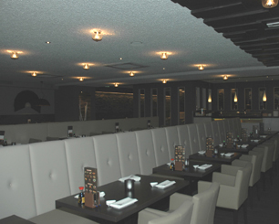 Het is een groot pand waarover eigenaar Yang nog weinig gegevens prijs geeft. Het inerieur oogt modern en riant met lage stoelen en banken in rood leder. 'Shintori is een sushi-, en grill restaurant. waar de gasten onbeperkt kunnen genieten voor een vaste prijs,' zegt mijnheer Yang. Onze moderne zaak biedt aan ruim 200 bezoekers plaats.