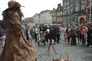 -Boven: De Cooking statues voor Central, waar kinderen na hun gift een snoepje uit de kookpan kregen. Links boven: Een peinsend stel op het Minderbroedersplein. zie ook zundert grime -Links:Black & white thema... foto's © paul kriele, 1 juli 2012. |