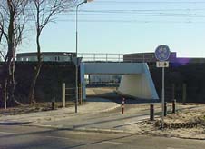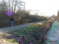 | -Boven: De fietstunnel onder de spoorlijn naar Nijmegen, vanaf het Noorden [De Herven] en vanaf het Zuiden [industriepark Hintham] gezien. -Rechts: Het oude fietspad naar de onbewaakte overweg verdwijnt.. foto's © gerard monté, 18 december 2003. |
