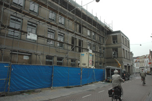 | foto's © paul kriele, 17 januari en 6 juli 2012. | Sedert enekele weken [vanaf juni 2012 ]lijkt het erop dat er intensiever in het complex St. Janshof, langszij de Lange Putstraat en de Verwersstraat, gewerkt wordt. |