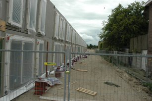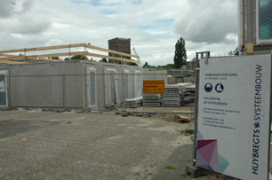 De bouw verloopt zo voorspoedig doordat gebruik wordt gemaakt van prefab bouwblokken.