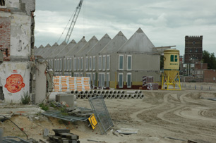 De eerste rij van72 zgn. knikwoningen aan het nieuwe Eikendonkplein. foto's © paul kriele, 15 juli 2012. |