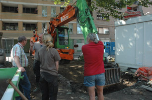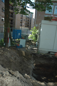 Bericht van maandagmorgen 23 juli2012/11.00 uur Opgravingen langszij Weversplaats ivm te kappen plataan.