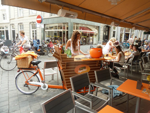 | In de Kruisstraat en bij de zaken in de Korenbrugstraat zagen we dinsdag 21 augustus de Apple Spritz bar langs komen. Ook Zoete Lief is een van de afnemers van deze cider servicedienst. | foto's © paul kriele, 21 augustus 2012. |