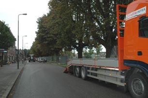 | -Rechts: Een deel van het materieel voor de werkzaamheden op de Geldersedam. Rechts daarvan het toekomstig bouwterrein, voorheen de HAS. -Boven: De Geldersedam die een maand dicht ligt. foto's © paul kriele, 26 september 2012. |