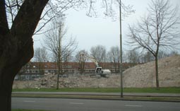 De voormalige HAS waar drie torenflats, of een variant daarop, gaan verijzen. foto © gerard monté 8 februari 2005. |