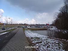 -Boven: Het kruispunt Graafseweg Aartshertogenlaan met zicht op stadion en bijgebouwen De Vliert. -Rechts boven: Zicht op transferium De Vliert. -Rechts: het afgeknotte stukje Aartshertogenlaan. foto's © gerard monté. 2 maart 2006. |