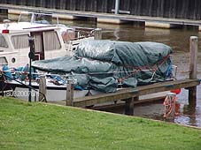 7 juli 2005: Gasfles in boot ontploft. Na bijna twee jaar ligt de beschadigde boot nog in de passantenhaven. foto © gerard monté, 18 maart 2007. |